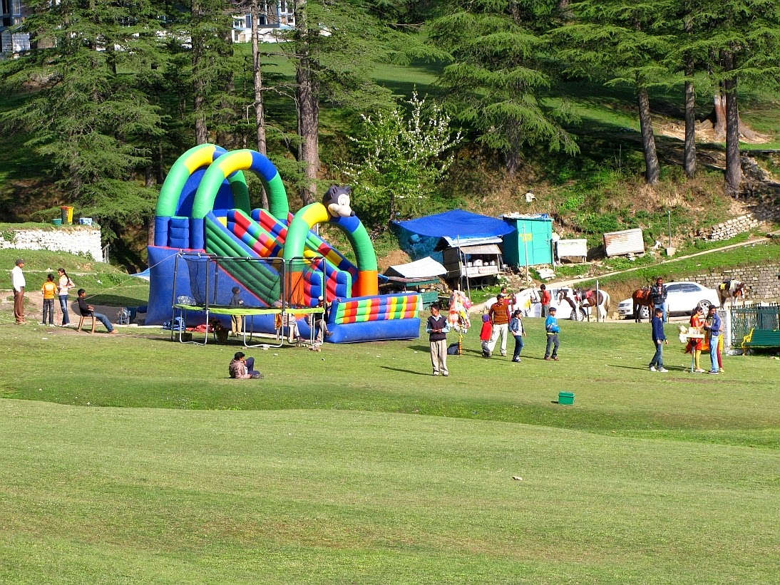 But Khajjiar ground is no ordinary ground—it is by far one of the most beautiful grounds I had ever seen—its attractions lay not with the artificial attractions. A few of the specialties—the inflatable slide and the giant rolling balls looked not out of place in the midst of picture perfect nature all around. Most visitors relaxed on this natural stage—with only a few restless young tasting the novelties.